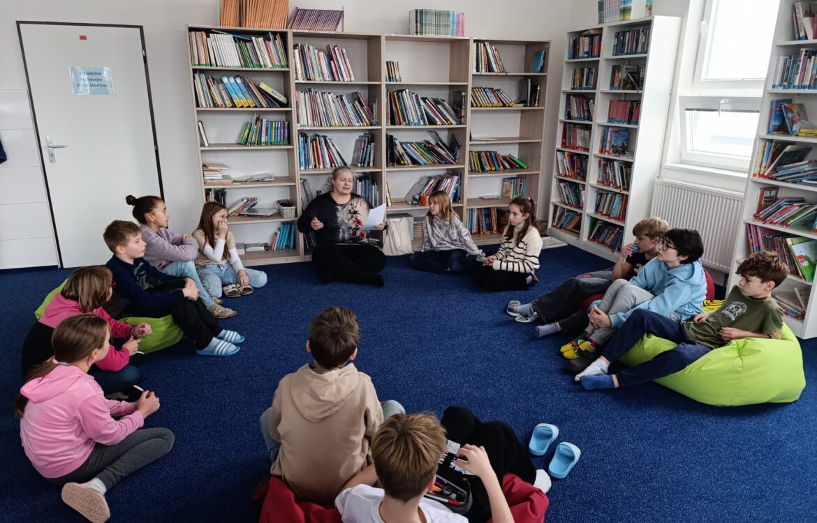Tento týden navštívila třídy 5. C a 9. A paní Kateřina Janošíková z knihovny na Pražmě, aby si s dětmi povídala o knihách a jejich
