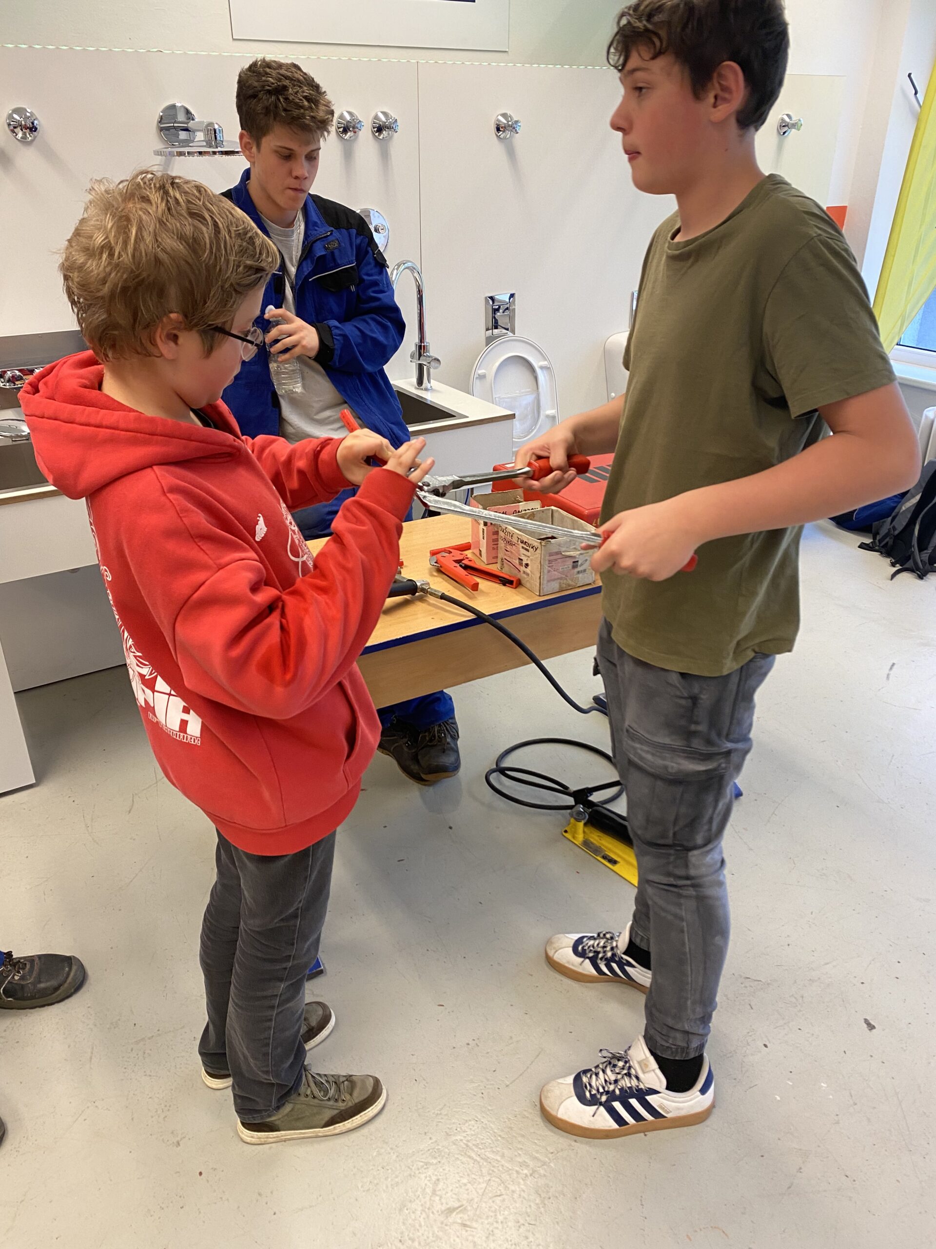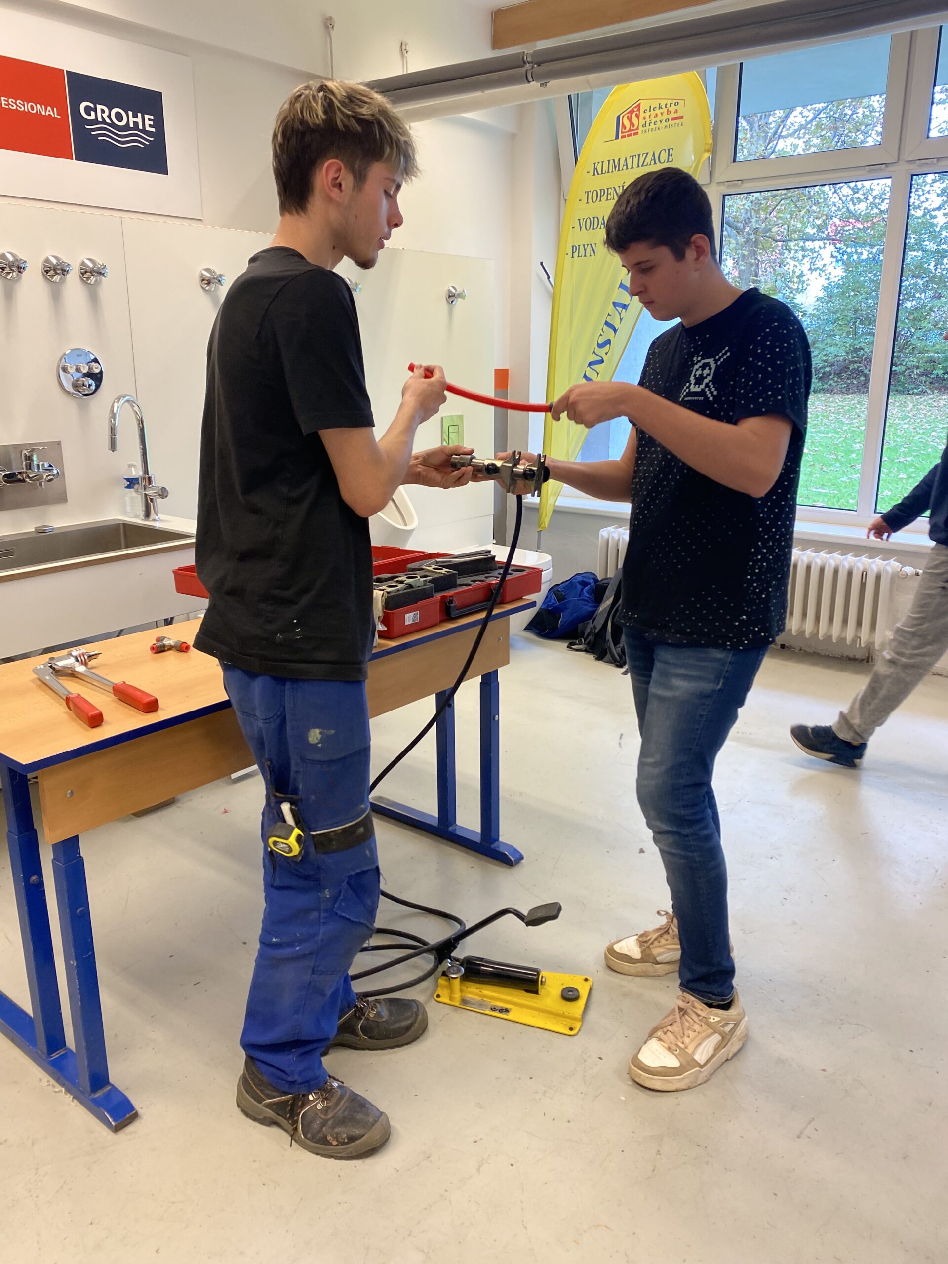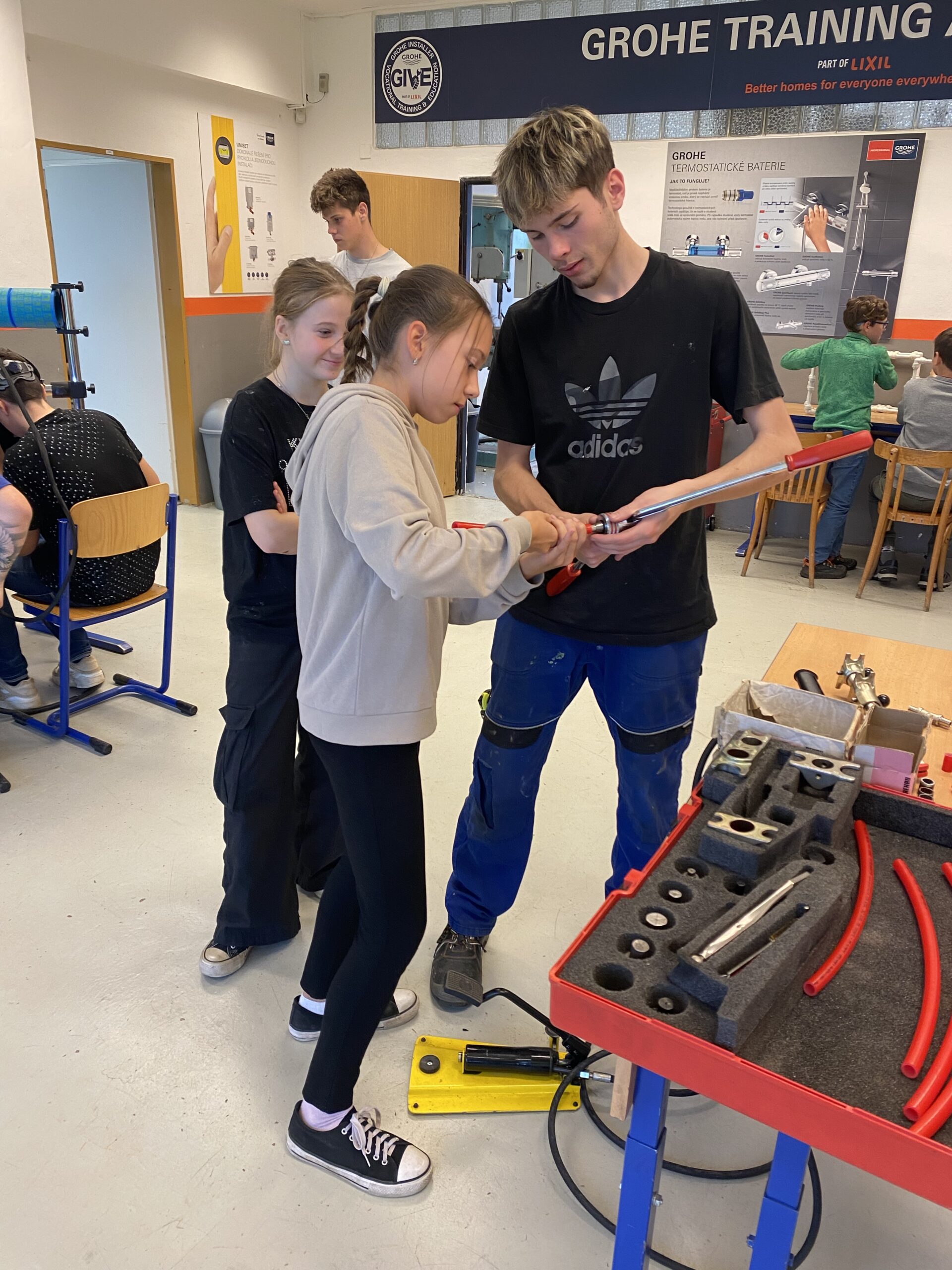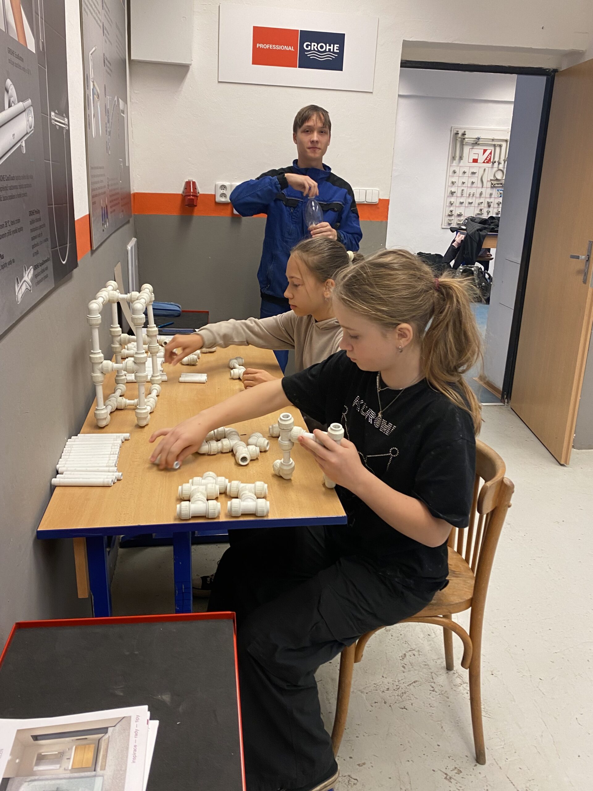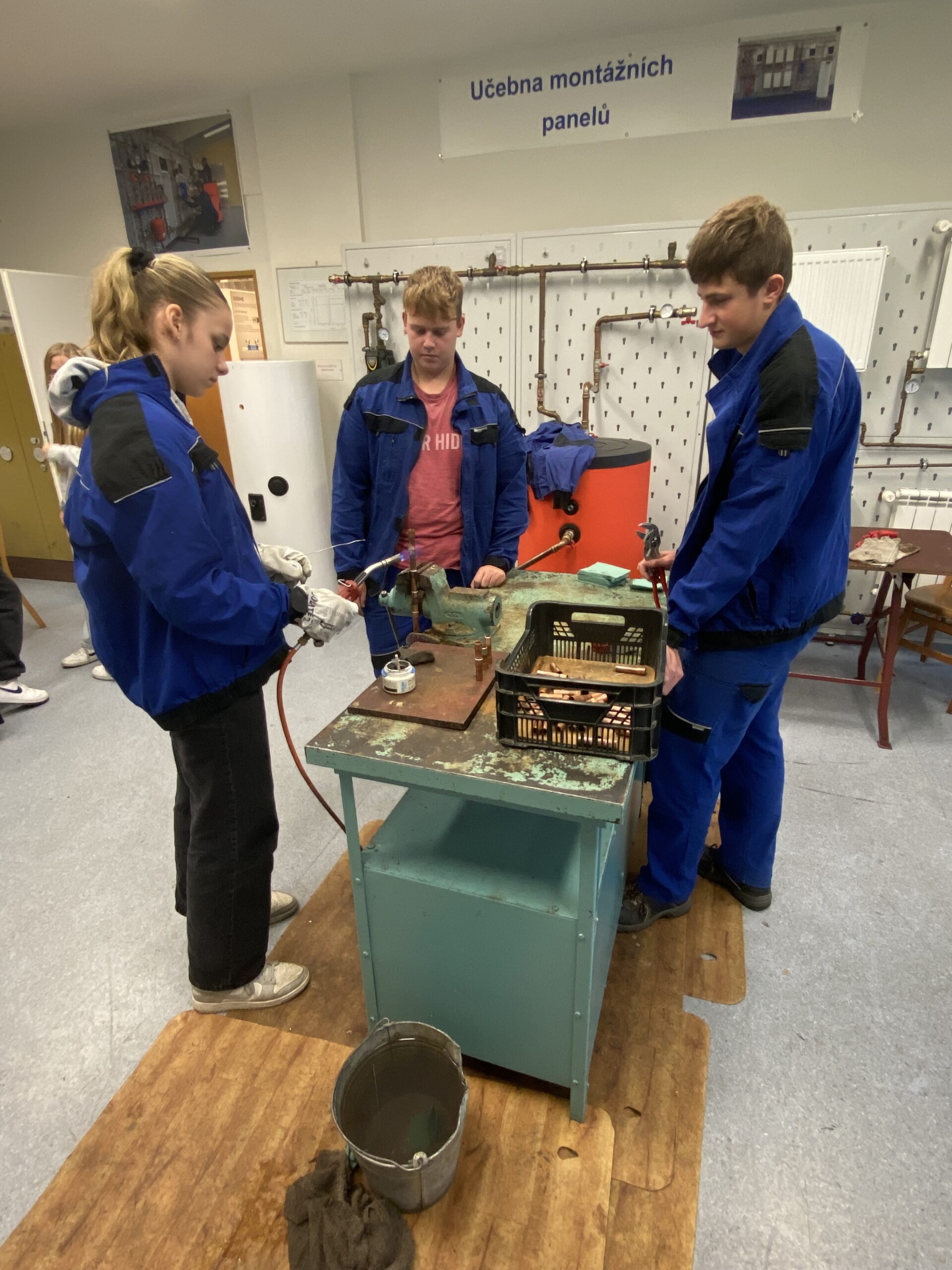 Po krátkém přivítání se žáci rozdělili do 3 skupin a vystřídali několik stanovišť. Vyzkoušeli si například svařování nanečisto, výměnu dveřního zámku na čas, smontování potrubí a mnoho dalších instalatérských a technických činností, při kterých prokázali šikovnost a někteří i trpělivost.