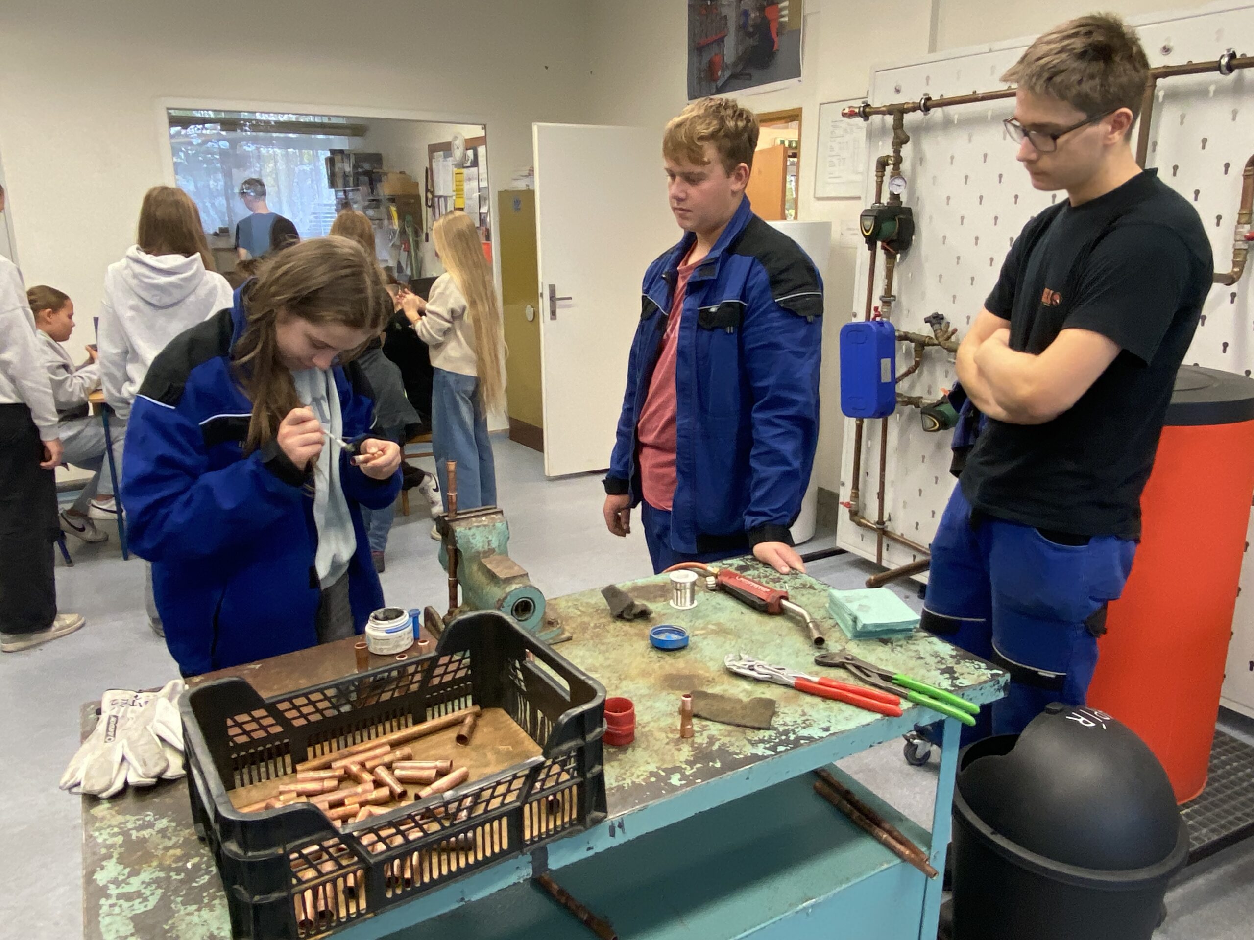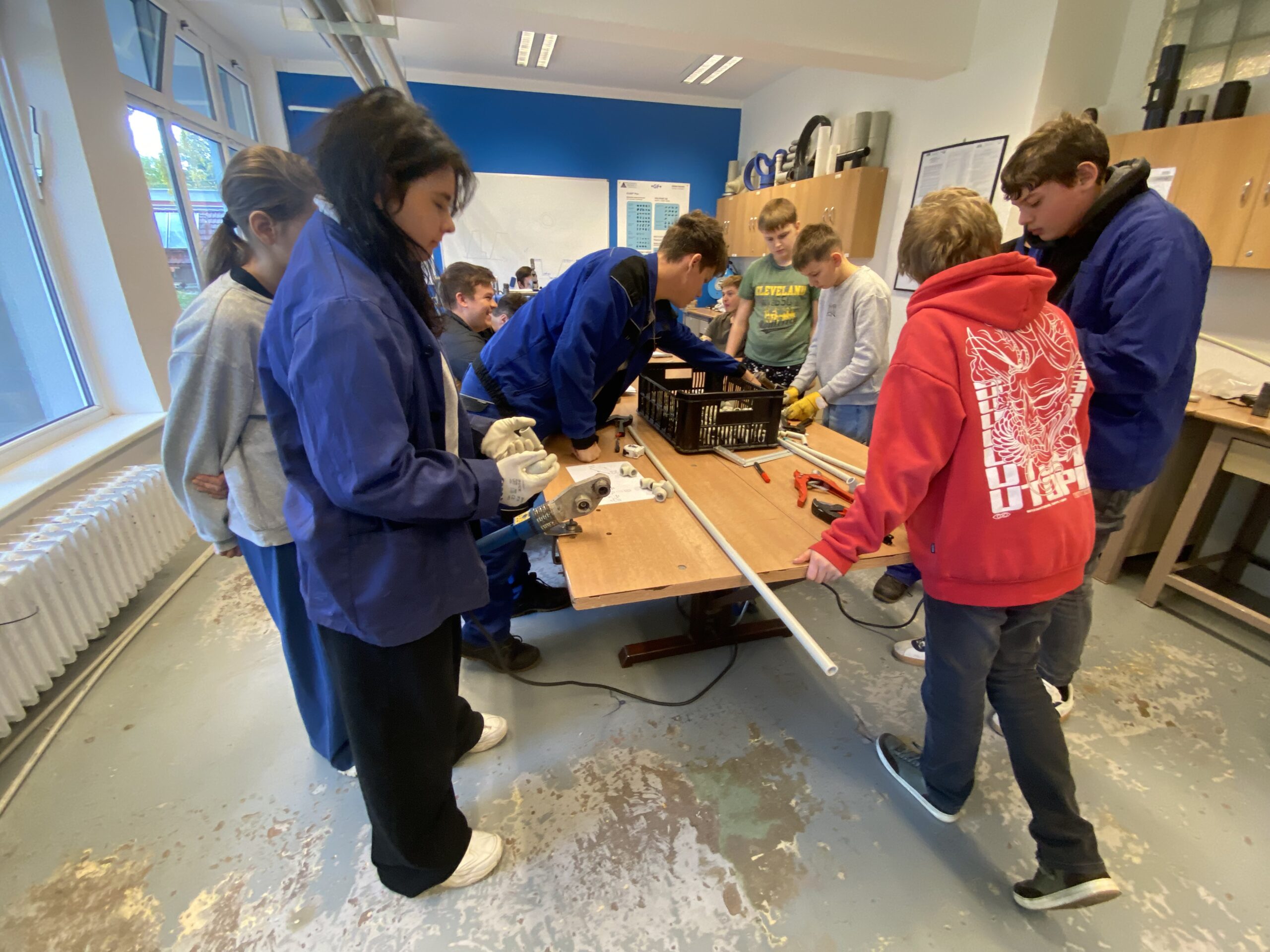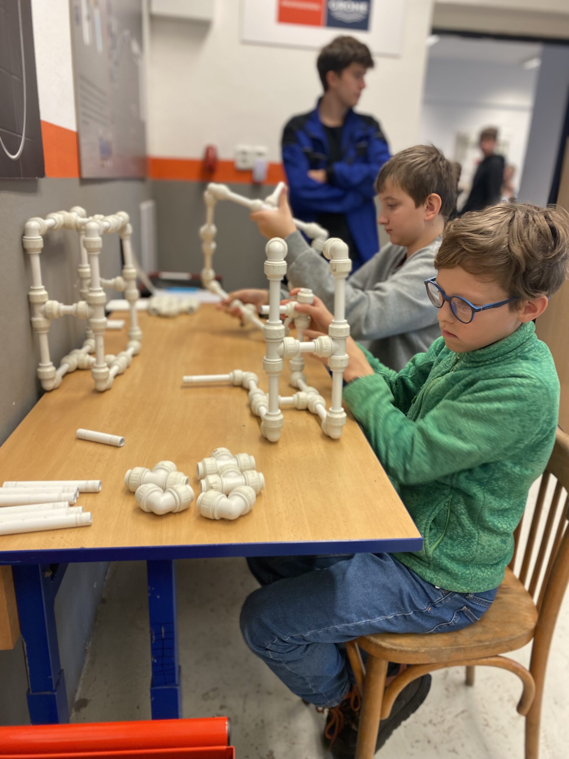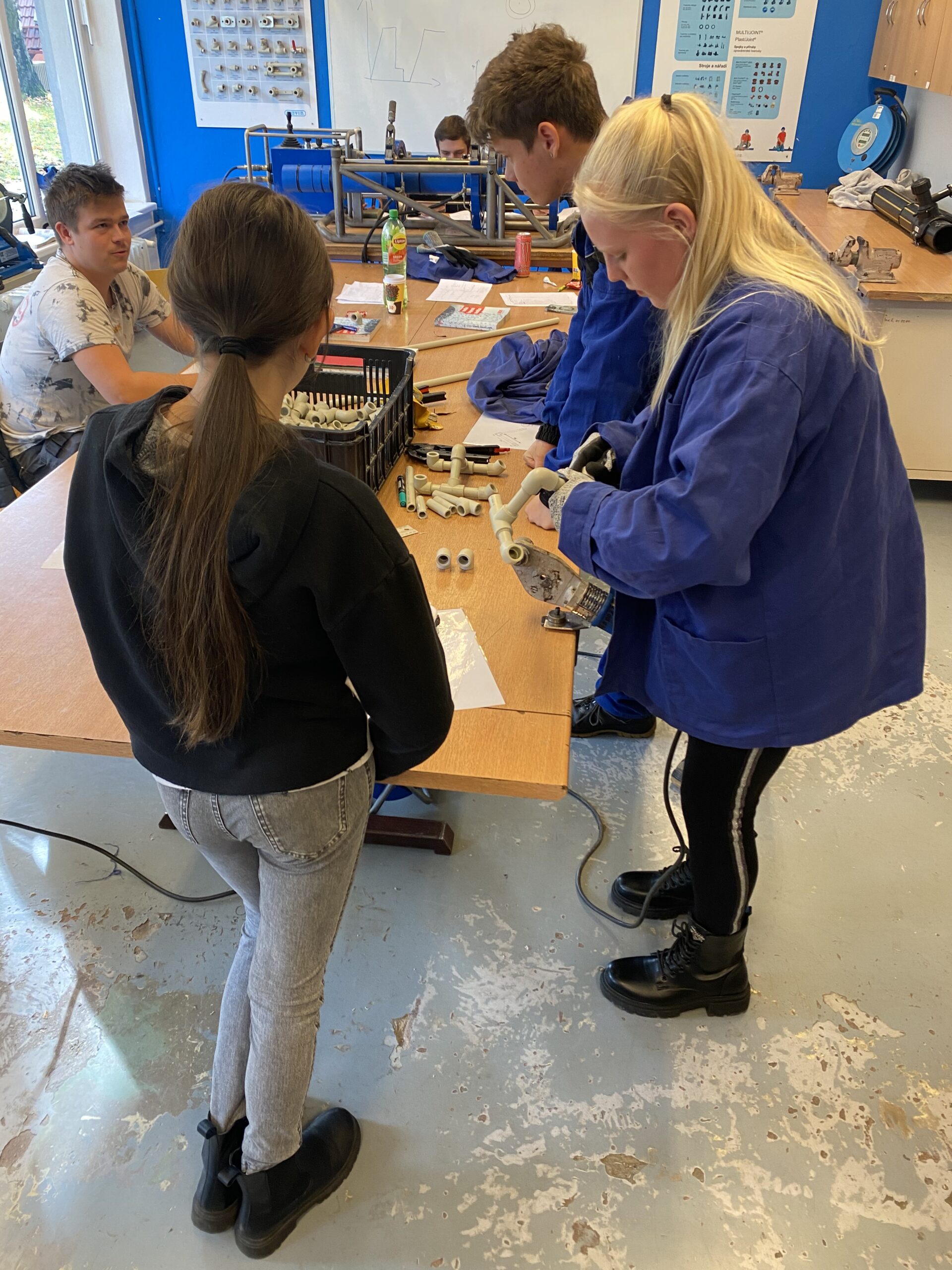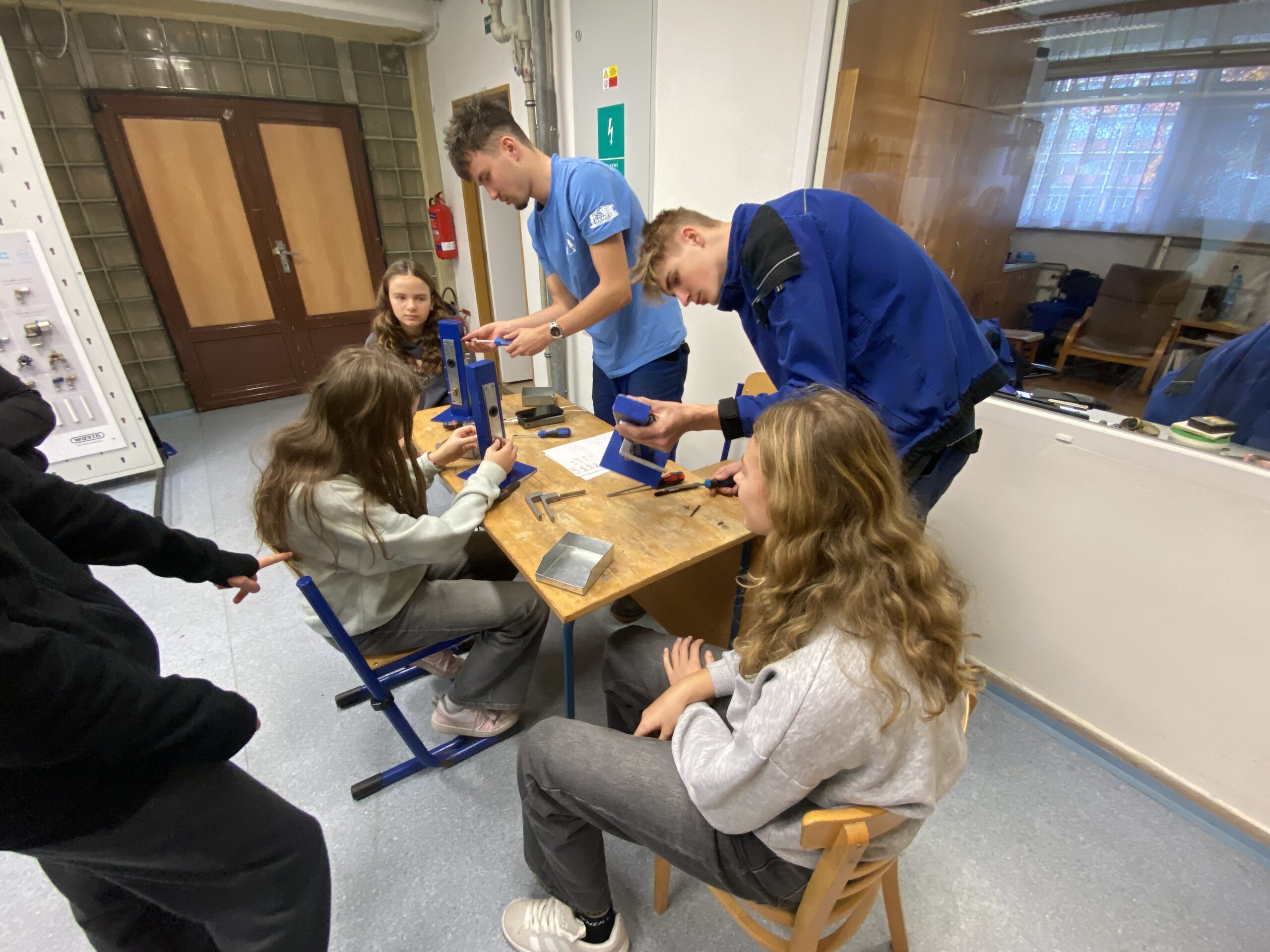 Po krátkém přivítání se žáci rozdělili do 3 skupin a vystřídali několik stanovišť. Vyzkoušeli si například svařování nanečisto, výměnu dveřního zámku na čas, smontování potrubí a mnoho dalších instalatérských a technických činností, při kterých prokázali šikovnost a někteří i trpělivost.