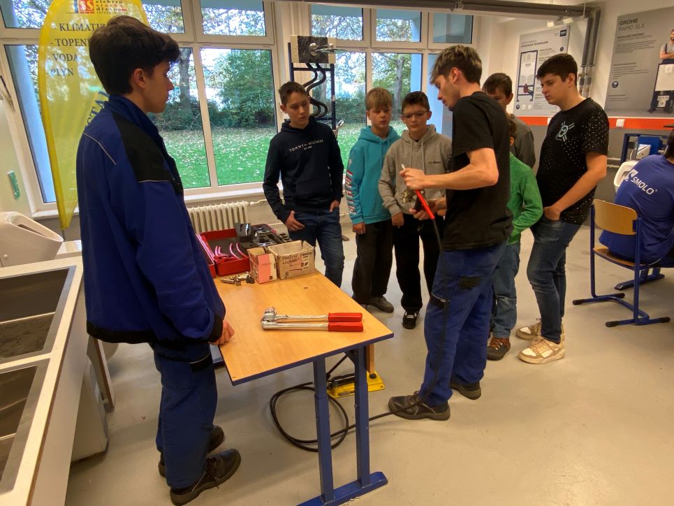 Po krátkém přivítání se žáci rozdělili do 3 skupin a vystřídali několik stanovišť. Vyzkoušeli si například svařování nanečisto, výměnu dveřního zámku na čas, smontování potrubí a mnoho dalších instalatérských a technických činností, při kterých prokázali šikovnost a někteří i trpělivost.
