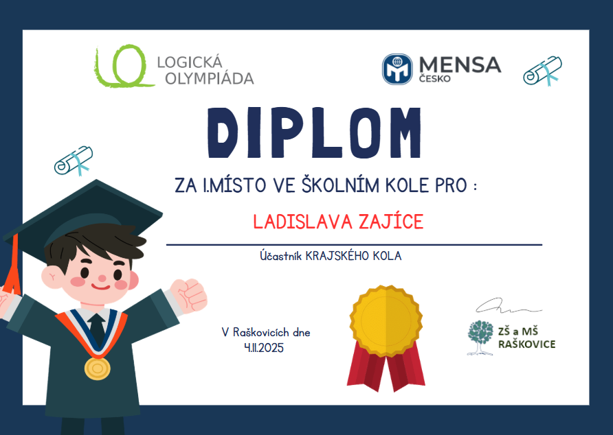 Velká gratulace patří Ladislavu Zajícovi z 5. A, který postoupil do krajského kola, jež se uskuteční 7. listopadu v Ostravě.