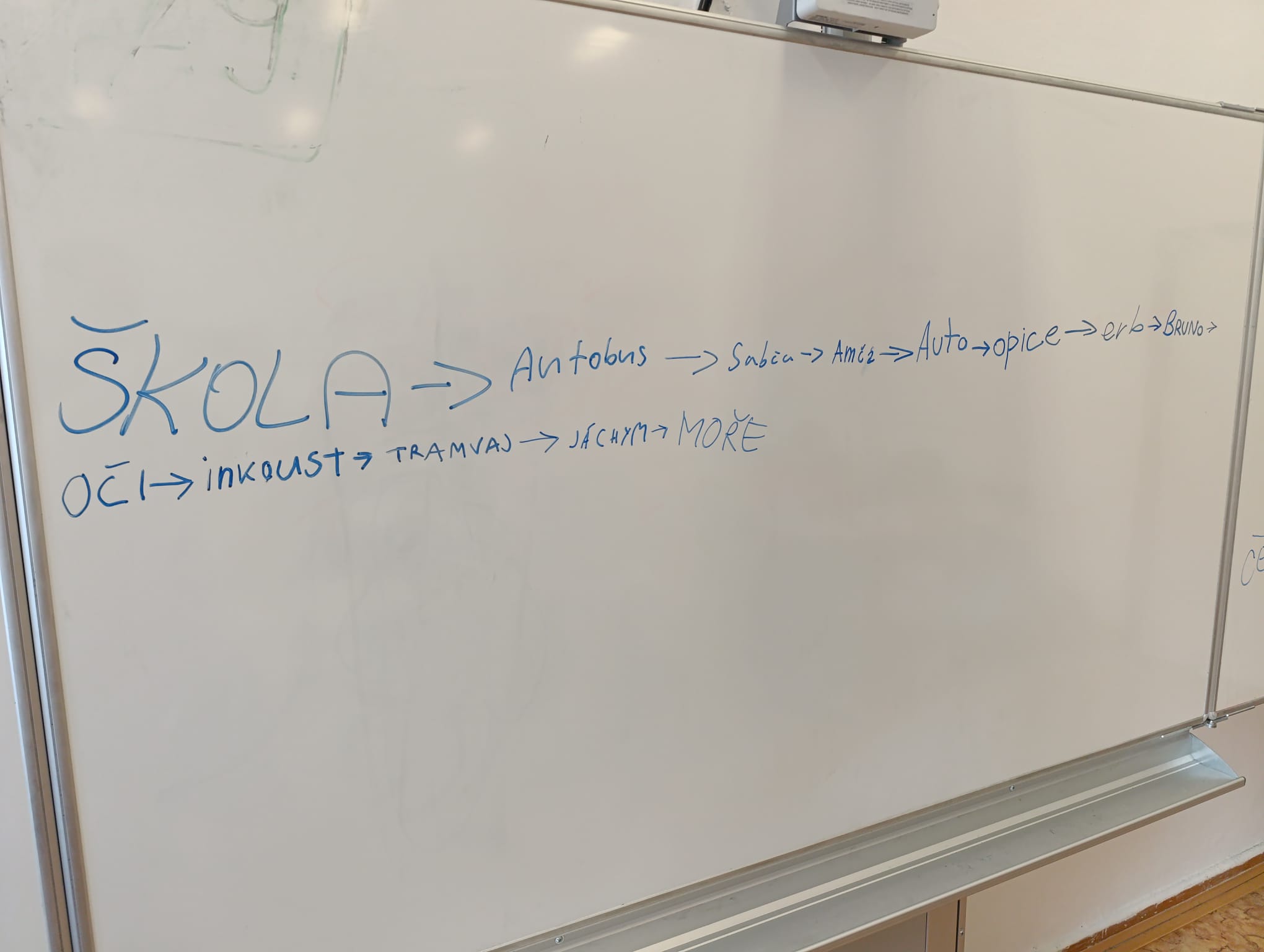 Poté následoval slovní fotbal na tabuli a hledání křestních jmen v přesmyčkách. Hodina byla zakončena aktivitou „lichotka“, při které žáci měli za úkol napsat spolužákům na záda něco hezkého a pozitivního. Nejen při této hře vládla skvělá atmosféra a bylo velmi pěkné, když děti četly, co jim spolužáci napsali.