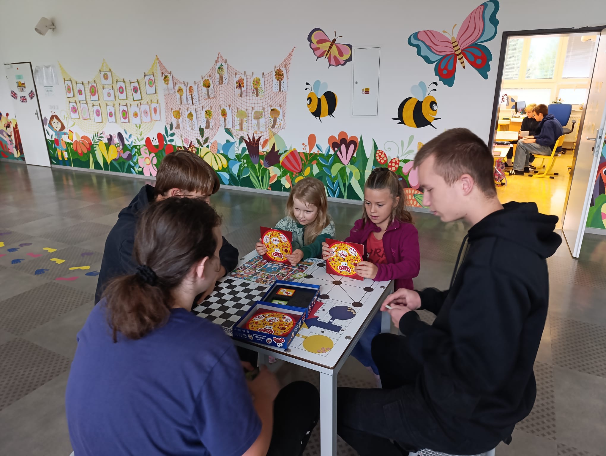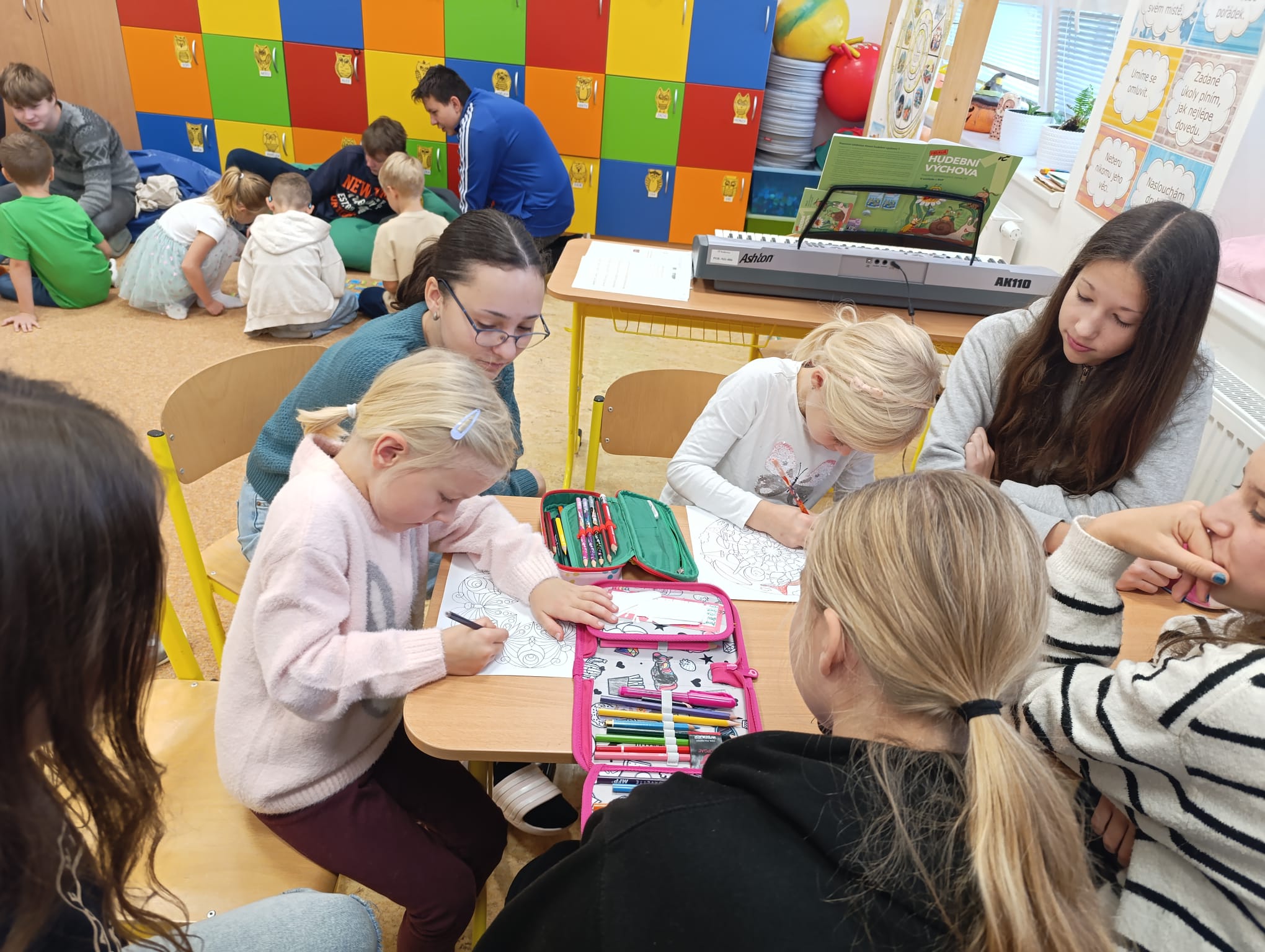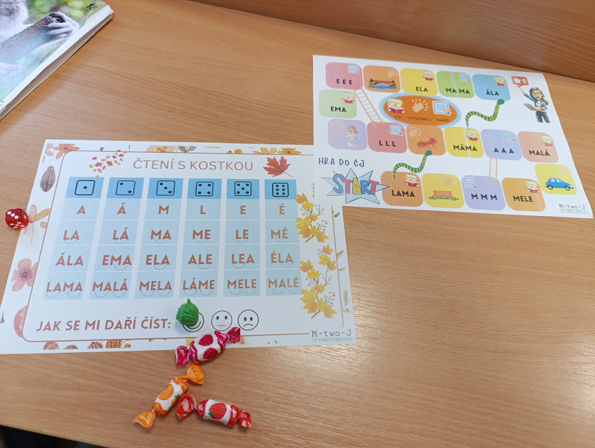 Prvňáčci si tak v malých skupinkách vyzkoušeli poznávání zajímavých předmětů, zahráli si „orlí oko“ nebo pexeso, skládali puzzle nebo se snažili odpovědět na vědomostní otázky. Odměnou jim byla chvíle odpočinku u omalovánky. V poslední části setkání si všichni zahráli češtinářské „člověče, nezlob se“ zaměřené na čtení.