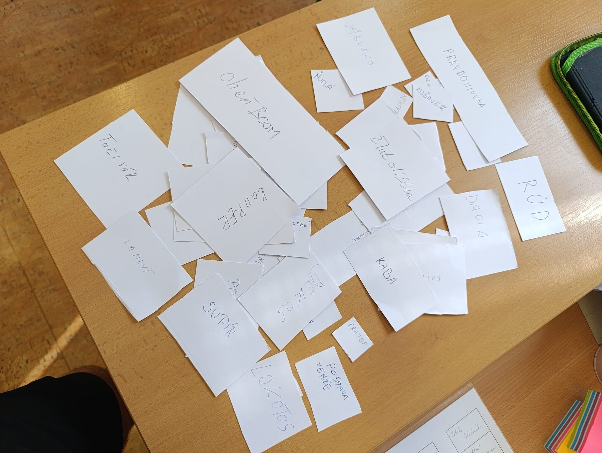 V „textové laboratoři“ analyzovali báseň a „pod mikroskopem“ určovali slovní druhy ve větách. Během aktivity „Vzoruju si třídu!“ žáci označovali prostřednictvím papírků všechny předměty ve třídě podle jejich vzoru podstatného jména.