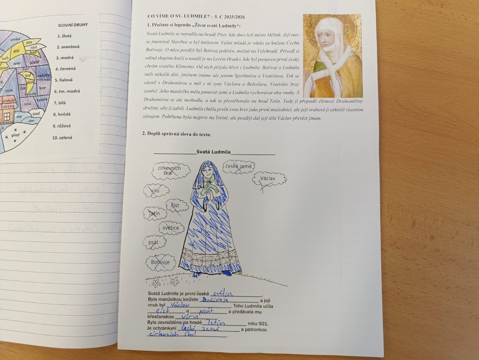 Dne 16. září u příležitosti svátku sv. Ludmily se žáci 5. C v hodině českého jazyka zaměřili na legendu o této významné osobnosti našich dějin.